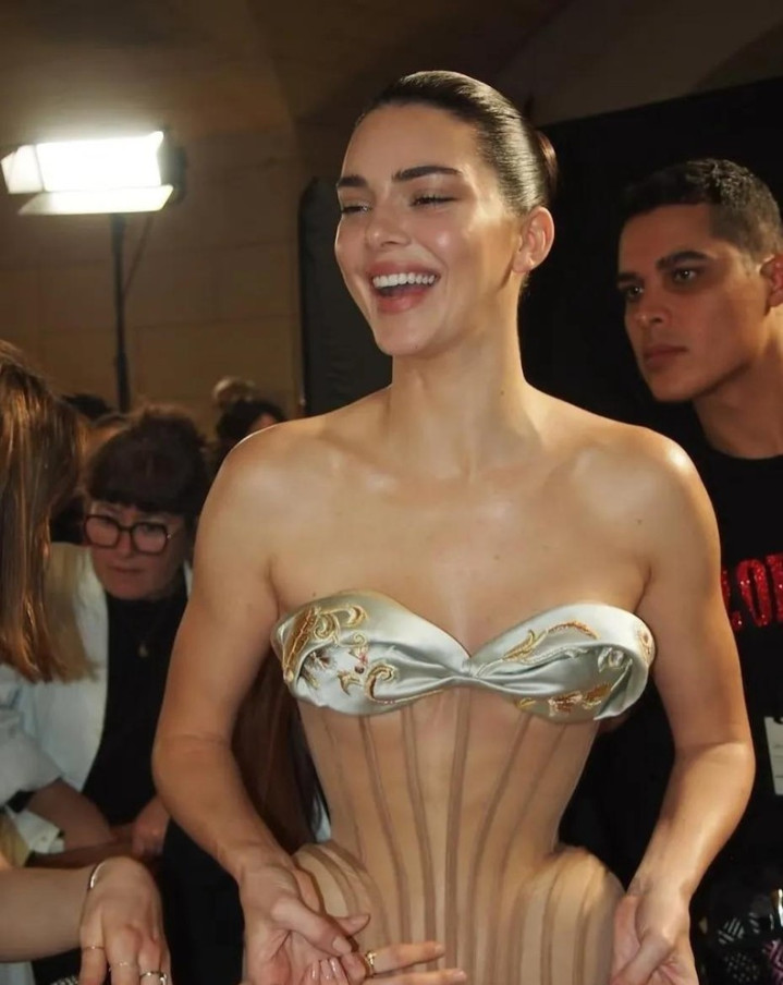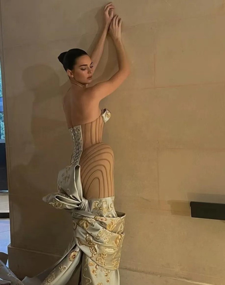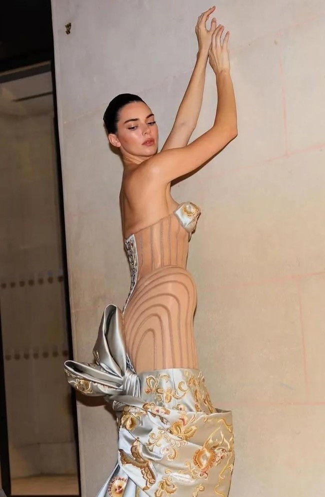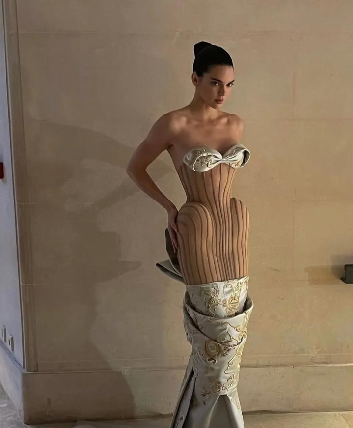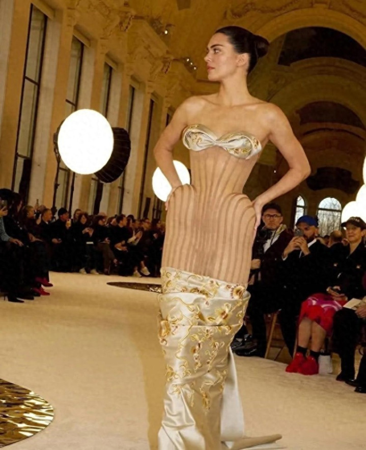 肯豆穿着一条像木板雕成、腰间还绑着巨大蝴蝶结的裙子走上巴黎T台,现场闪光灯一片,但网络上炸开了锅。